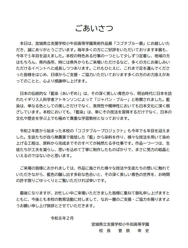 第5回宮城県立支援学校小牛田高等学園美術作品展「コゴタブルー展」開催!!