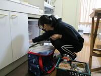 買い物に行く時は,自転車も使うことができます。購入してきた食材は,常温・冷蔵を区別して,収納します。買い物へ出発する前に,時間短縮のため炊飯をセットしてから行く生徒もいます!