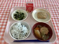 ※ 食育だよりでは、今日の給食で使っている切り干し大根の栄養と、切り干し大根を大根にした場合の栄養を比べたグラフを掲載しました。