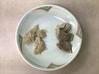 「寒天」は「ところてん」を切って凍らせ,解凍したものを乾燥させてできたものです。さらにもとをたどると,「ところてん」は「テングサ」といわれる海藻から作られます。「テングサ」を煮た汁を固めると「ところてん」ができます。
