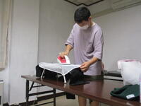 実習着のアイロン掛けをしたり,朝に洗濯したものの整理をしたりします。