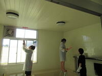 食堂にある4つのエアコンのフィルターと窓のレールなどの掃除を行いました。