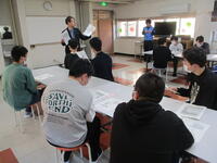 寄宿舎生活での規則やマナー、各部屋の使い方などの説明や、来週実施予定の外出オリエンテーションに向けての話を聞きました。