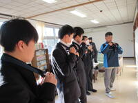 新年度は、ネクタイに苦戦する生徒も多いので、男子棟では初日の朝にネクタイの締め方を教わりました。女子棟では、寄宿舎生活ガイドの読み合わせをしました。朝礼後は、寄宿舎周辺を周り、避難場所の確認をしました。