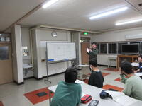 まず9日の夜に、避難訓練事前指導を実施しました。災害時の基本的な対応、自分自身の身の守り方、正しい避難の仕方について学びました。