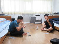 日替わりで、指導員オススメのDVD鑑賞会も実施しました。上映したジャンルは幅広く、ディズニーやルパンなどアニメから、昔の映画までさまざまでした。また、舎室でカードゲームなどをして静かに楽しんでいる生徒もいました。