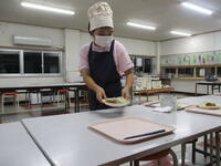 夜の配膳は、校内実習中の2・3年生が担当しています。とても頼もしいです。