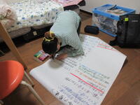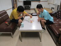 集会室や食堂でマンカラというゲームをしたり、テレビやDVDを視聴したりして、ゆっくり過ごしています。また、保護者見学用の席札や食堂装飾作りにも取り組んでいます。
