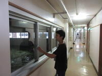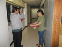 事前に洗濯していたカーテンの取り付けと廊下の照明カバーを掃除して取り付ける作業を行いました。広範囲の活動だったので、外チームが合流して協力しながら取り組みました。