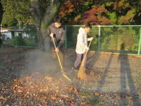紅葉がきれいな季節になりました。寄宿舎周辺の木々も色づき、春に綺麗な花を咲かせていた桜の大木は落葉しています。また、朝掃除をしている際や夕方外遊びをしている際には、渡り鳥の飛んでいる姿も見られ、すっかり秋を感じます。落ち葉掃きも毎年恒例になっています。