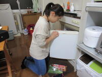 普段は手つかずの浴室の換気扇と床掃除、脱衣室に設置してある洗濯機の裏側の埃取り掃除を行いました。