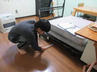 長期休業期間を利用し、舎室と乾燥室のワックス掛けを指導員で半分けして行いました。生徒には、冬期休業前の最終日の部屋掃除の時間にベッドの立て掛けと衣装ケースなど、部屋にある荷物を廊下に移動してもらいました。毎日生徒がきれいに掃除をしてくれているので、作業もとてもスムーズに行えました。