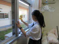 窓口で挨拶する際に、携帯電話を提出します。雨の日、濡れた傘は雑巾やタオルで拭いた後、自室で乾かしています。靴が濡れた際は、靴洗いもしています。