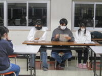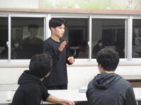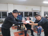 チームの代表者が、活動の報告と感想を発表した後、乾杯をしました。最後に、ルーレットくじをして景品のお菓子をもらいました。その中に、当たりくじがあった人には、「○○賞」が授与され、とても盛り上がりました。