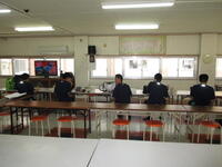 1年生は,美里町や近隣の市や町の事業所に寄宿舎から通勤します。事業所ごとに通勤時間や出社時間が異なるため,寄宿舎を出発する時間も生徒によって異なります。普段よりも1時間も早く出発する生徒もいるため,朝の活動も出発時間に合わせて3パターンに分かれています。