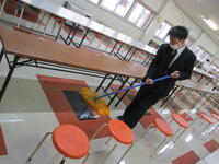 8:00に出発する生徒は,出勤までの時間に余裕があります。舎内の環境整備の手伝いを募集したところ,多くの生徒が手伝ってくれています。