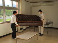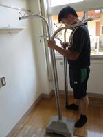 2日目。この日は,食堂掃除とワックスがけ,乾燥室の物干し台と竿を元に戻す作業を2班に分かれて行いました。食堂掃除では,ポリッシャーという床掃除専用の機械を使用しました。扱いが難しく,慣れが必要な機械ですが,作業班で使ったことがある生徒が,経験を生かして丁寧に仕上げてくれました。乾燥室では,とても重い物干し台18台,支柱と竿も全部元に戻しました。