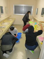 翌朝は,6時15分に朝礼を行い,その後7時30分の朝食まで,各部屋の大掃除を行いました。冬季休業に向け洗濯物は残さず全て洗濯するので,洗濯機はフル稼働!あわただしい朝ではありましたが,黙々と掃除に取り組みました。