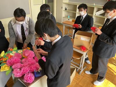1学年と2学年の生徒たちが,卒業式に向けての装飾や最後の準備と調整を行いました。