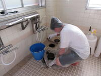 トイレの便器洗い、排水溝掃除を行いました。いつも使っている用具ではないもので、細かいところまでみんな夢中になって便器を磨いていました。
