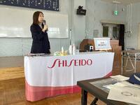 講座では、美しい肌を保つための正しいスキンケアをはじめ、清潔感を高めるヘアケアやヘアスタイリング、第一印象を良くするメイクアップテクニック、日焼け止めの効果的な使い方など、実践的な内容が紹介されました。生徒たちは実際に化粧品を使用しながら、自身の肌や表情の変化を体感し、身だしなみが与える印象の大切さを実感していました。