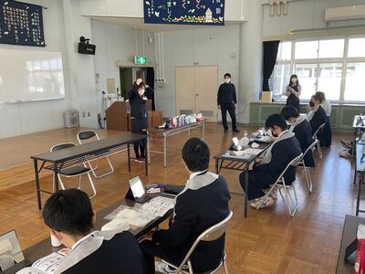 本校は部活動に全員加入となっています。この日は,部活動ごとに生徒が集まり今年度の反省などを行いました。