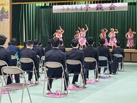 総合文化部(音楽班),フラダンス部,伝統芸能部が,卒業を祝って演奏・演舞しました。いずれも練習の成果を十分に発揮した内容でした。
