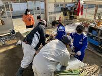 12月9日(金),青生小学校第3学年の児童が農業体験学習の授業で本校を訪れました。「農家の仕事」という題材で,本校園芸班が管理する畑において長ねぎの収穫,袋詰め体験をしてもらいました。