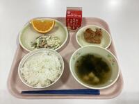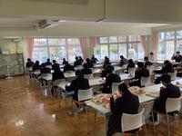 1年生は食堂、2・3年生は各教室で給食を食べます。
