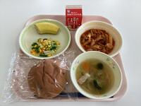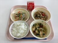 もやしとは、豆から出たやわらかい芽の部分のことをいいます。日本で作られているもやしは主に「緑豆もやし」「ブラックマッペもやし」「大豆もやし」の3種類です。今日の給食に使っているものは「緑豆もやし」で、一般的に「もやし」というと緑豆もやしのことです。「ブラックマッペもやし」は、「緑豆もやし」よりも細めのもので、シャキシャキとした食感です。「大豆もやし」は、豆がついたままのもやしで、給食ではナムルや炒め物に使っています。