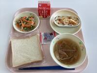 ※ グラタンのホワイトソースは、宮城県産ひとめぼれの米粉と牛乳を使って給食室で手作りしています。