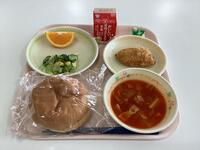ヒント4 わたしは、今日の給食に「かつ」になって出ています。