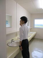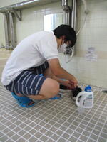 7月18日(火) 寄宿舎では大切な行事の一つである大掃除がありました。毎日の掃除が行き届いているので、大掃除のときには、普段手が届かない高いところや、大きなものを動かしたり、部品を外したりして掃除します。今回は、6グループに分かれ、指導員の先生と一緒に、隅々まできれいにしました。