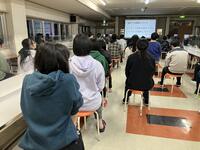 先々週実施した「学校見学会」では、500人を超える中学生や保護者、担任の先生、関係機関の方々の参加がありました。日差しが強い中でも、時折入り込む風の心地良さを感じる日や、陽はそうでなくとも、湿気の蒸し暑さを感じる日が続きましたが、最終日だけは、あいにくの降雨となりました。5日間をとおして、大勢の皆さんに見学してもらいました。