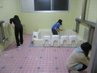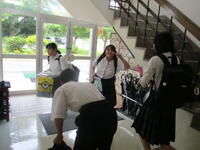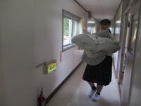 8時出発の生徒は、時間に余裕があるため環境整備を手伝っています。