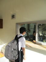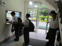 出勤時は、窓口で舎監の先生に挨拶し、必要な生徒は携帯電話を受け取ってから出勤しています。
