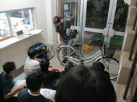 1年生の生活体験学習も始まりました。それに伴い、今まで1年生は徒歩での外出のみ許可されていましたが、寄宿舎での自転車使用や乗る前の安全点検の方法について確認し、生活体験学習の食材購入の際や遠くへの外出などにも自転車を使うことができるようになりました。