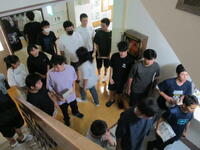 2チームが一階と二階それぞれに分かれて掃除をします。広い範囲を協力しながら取り組むので、二年生が中心となって事前に相談をして進めています。