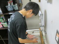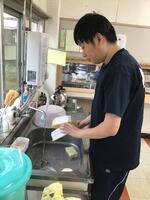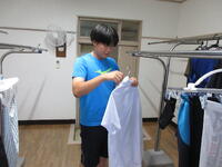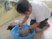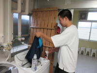 帰舎後すぐに昼食で持ち帰ったゴミを片付けたり、作業着の下洗いをしたりしています。