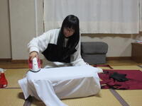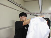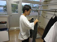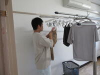 衣類をよりきれいに洗い、乾かすために、襟・袖洗いや洗濯物の入れる順番、ワイシャツのきれいな掛け方、乾きやすいズボンの干し方、ピンチハンガーの使い方などを教わり、早速実践しています。