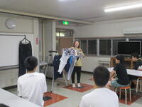 事後学習では、動画をみんなで見て避難する様子を振り返りました。姿勢を低くすることやハンカチで口元を隠して素早く行動すること、暗い中でも安全に避難するために懐中電灯を持つことなど、実際に災害が起きた時に意識しなければいけないことを再確認しました。