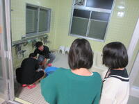 小牛田の寄宿舎では、毎年この時期に舎室のFF式ファンヒーターへの給油の仕方を教わります。2・3年生はすでに経験があるので、今回は寄宿舎で初めての冬を迎える1年生が実際に給油を経験しました。