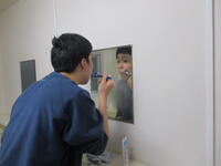 実習期間は、外部の方と接することが増え、より身だしなみを意識できる機会でもあるので、棟ごとに男子はひげそり、女子は整髪の仕方などについても改めて指導員から教わっています。