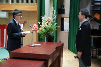閉会後には、校長先生から新生徒会の認証状が授与されました。最後に、旧役員からはこれまで協力してもらったことのお礼、新役員からはこれからの意気込みについて挨拶がありました。今後は1・2年生が主役となります。生徒一人一人が自分の役割を自覚して頑張ってほしいと思います。