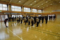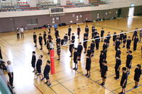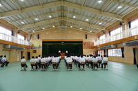 本校では、毎週月曜日に全校朝礼を体育館で行っています。