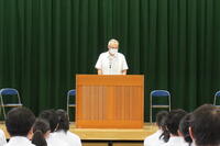 本校は前期・後期の二期制となっています。先日9月28日(木)は前期終業式が行われました。校長先生からは「過去の自分を振り返る」ことについて、振り返りや自分を見つめ直すことの重要性、後期に向け、さらに意識をもって生活してほしい、ということを伝えられました。その後、各学級の代表生徒による発表が行われ、自分の成果や課題、後期の抱負など、自分が感じたことを全校生徒に向けて話していました。